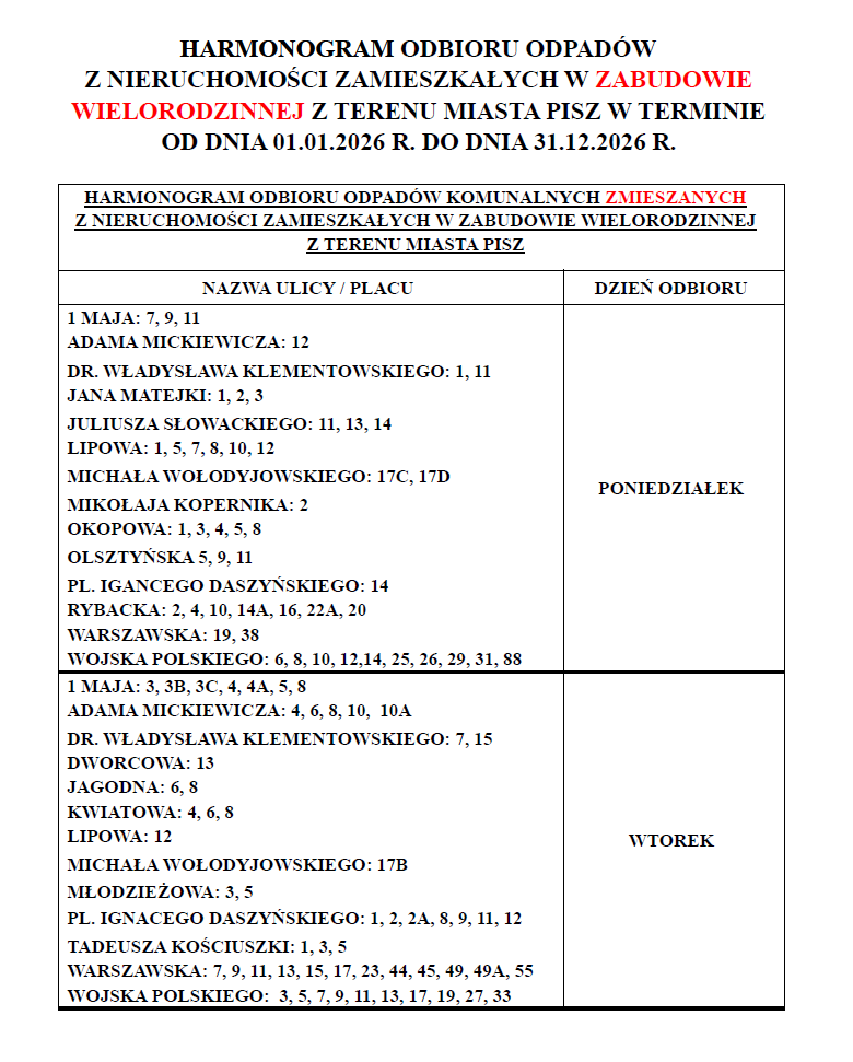 WIELORODZINNEJ Z TERENU MIASTA PISZ W TERMINIE